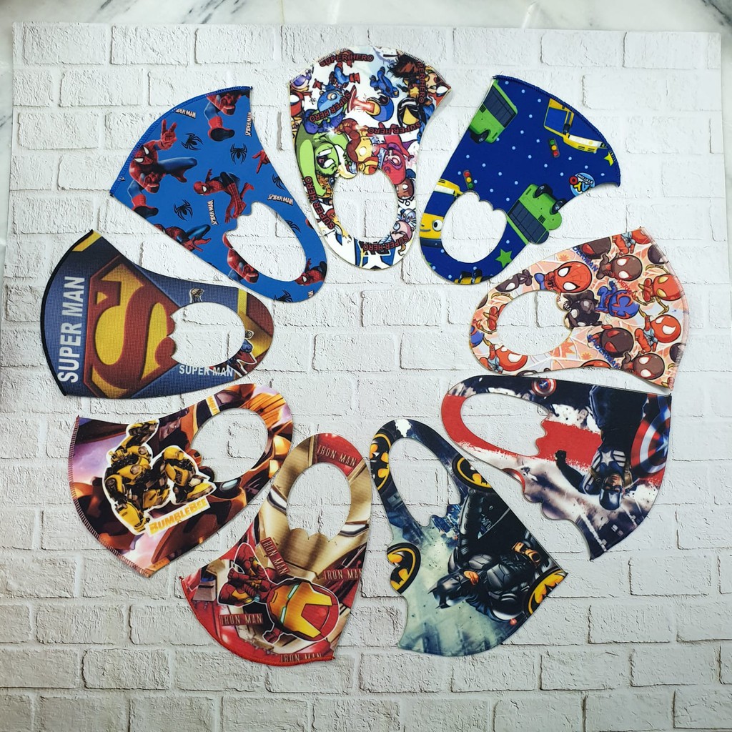 Masker kain Scuba anak2 motif gambar isi 6 PCS Masker anak Sumber : shopee.co.id